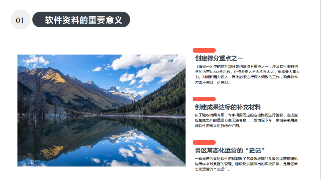 培训会结合景区5A创建工作实际从“软件资料简介和编制注意事项”、“四姑娘山软件资料存在主要问题剖析”、“软件资料成品输出注意事项”三方面进行阐释,重点就景区如何收集整理软件资料进行了详细讲解。