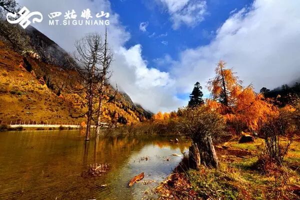 秋天的水总是清凉中带着冷意,而秋天的色彩却是暖洋洋的,所以在四姑娘山里,周围的暖色彩林倒映在冰凉的水里,有一种混搭的潮流风,连带着水都透着秋天的气息。