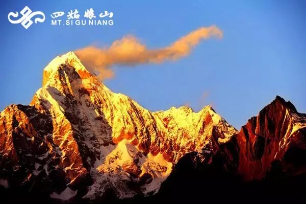 “牵一发而动全身”,这是四姑娘山落日的最好写照。当落日照在山巅时,不仅仅将雪山映照如金山,连那漂浮的白云也在那一时刻镀上金光,黄的艳丽,红的火热。