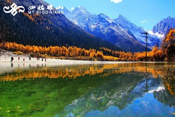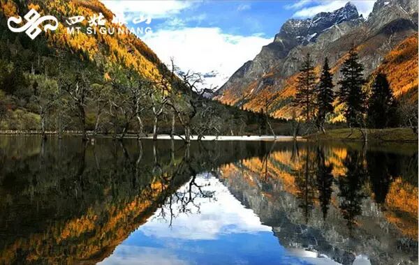 秋天里四姑娘山的水在阳光的照射下,泛着点点星光,就像是星星在水里洗澡。水平如镜的湖面也倒映着彩色的山体,走几步,水中的影子仿佛有种水中游的感觉。