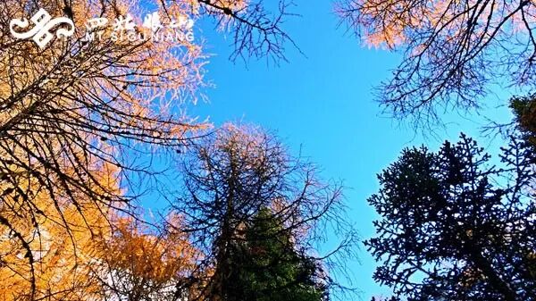 高原上的天气总是好到没朋友,看四姑娘现在这彩衣飘飘的架势,估计也是美到没朋友了。湛蓝的天空漂浮丝丝云朵,如果站在彩林丛中看天空,彩色树枝加上底板蓝色,简直美如画!