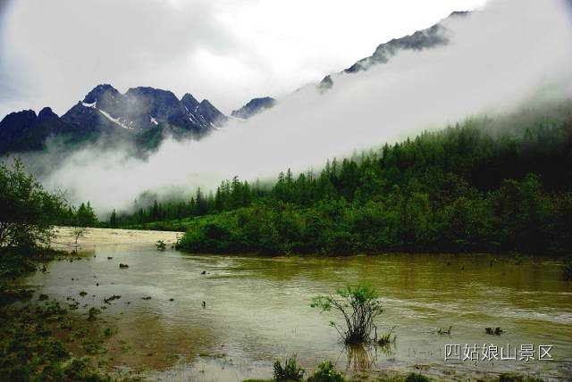 四姑娘的冰堰湖,万绿丛中的一池湖水,静谧如斯,仿若一个世外桃源,无人打扰。这份美,那样的纯粹。空气之中云雾氤氲,不知不觉,又给这份美丽披上了一层神秘面纱。