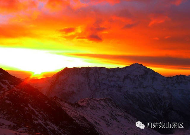 日出时的绝美,整个天空一片绯红,界线分明,云海之上,是朝阳,是希望,是梦想。