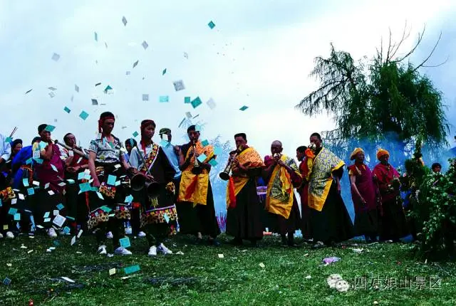 来自四面八方的村寨的藏族小伙、姑娘们身着节日盛装,在悠扬的歌声钟踏出整齐的舞步。