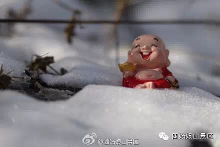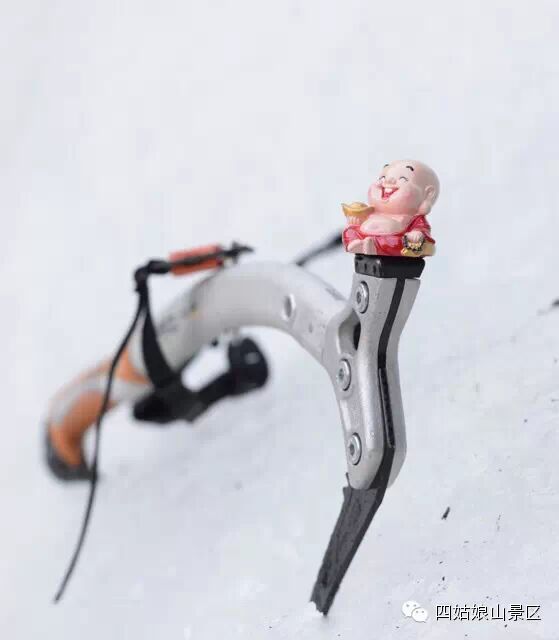 攀冰现场,可爱的小弥勒也来给大家加油助威了!有了这温暖的笑容,瞬间将冰瀑的寒冷驱散。