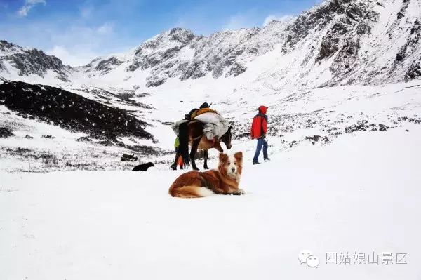 这次四姑娘山之行和我朋友一起去的,我们两人都很喜欢狗,去之前还是怕到时候不让狗进咋办。还好一切顺利。(莎莎是只边境牧羊犬,狼狼是只拉布拉多犬)