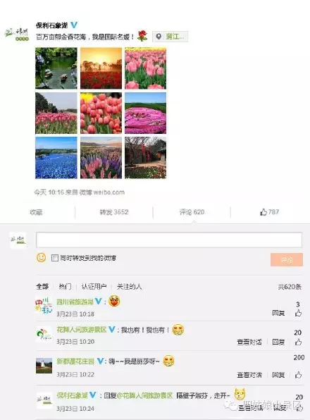各种颜色的花儿竞相开放、拍着自拍上传、要把自己最美的一个样子展现给世人。它是芬芳的、也是娇艳的、是高雅的、更是脱俗的。如果它们会说话,一定会给你讲一个关于春天关于绽放的故事。如果三月的四川各个花卉都有微博了,那一定是热闹的。