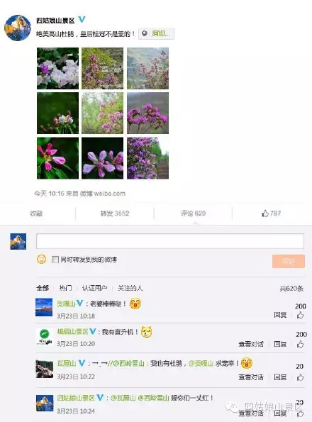最后当然是我们蜀中皇后四姑娘山的微博咯~