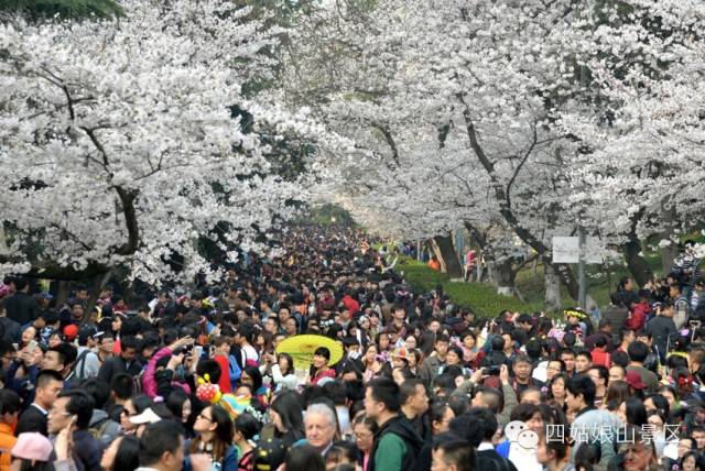 (武大樱花和东湖磨山樱花周末盛情绽放,两大景区两天涌入近40万中外游客,人气爆棚。)