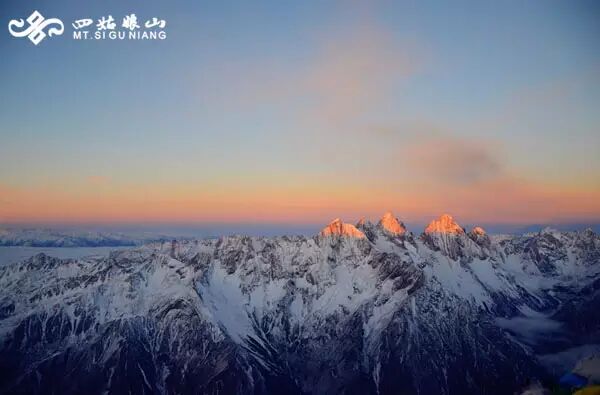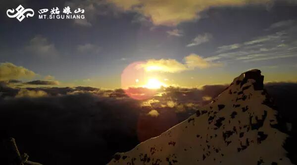 冬日里,四姑娘山伴着霞光醒来,带着慵懒的惺忪,俯瞰白茫大地。太阳行离地平线,将闪耀登场。