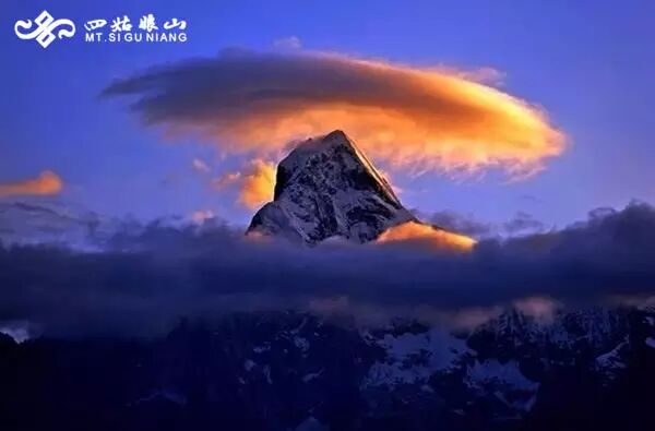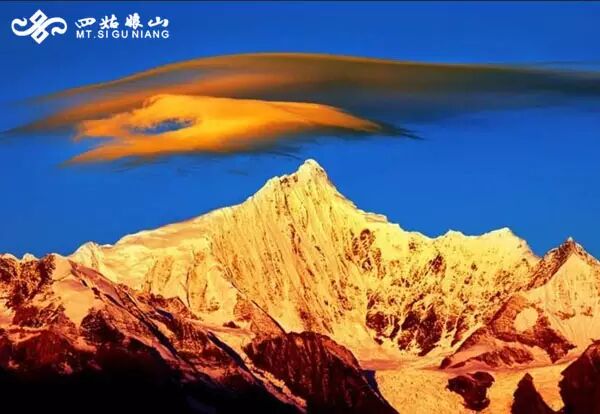 那轻舒漫卷的云朵,好似身着红装、金装的少女,伴着微微吹起的东风,在四姑娘山的湛蓝天空中,身姿曼妙,翩翩起舞。
